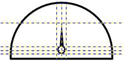 For the semi-circular gauge, I used a similar technique to the original radial gauge for creating the required layout, where a grid with various rows / columns with star widths / heights create a proportional layout within which elements such as the needle are placed: