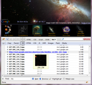 Personally I think mapping is one of the most exciting forms of application for mobile devices - the fantastic imagery available from Bing and Google maps, coupled with GPS technology, results in some pretty amazing tools. As a Windows Phone 7 developer, I have spent a fair bit of time poking round the Silverlight Bing Maps APIs. A really cool feature of the Bing Maps control is that it accepts custom tile-sources. You can find code elsewhere that explains how to use this to render Google Maps data via a Bing maps chart control. For a bit of fun I decided to use this approach to render Google Sky on WP7 ...