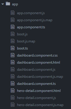 One drawback of using the command-line compiler is that the generated JavaScript and sourcemap files are output directly alongside the source TypeScript files: