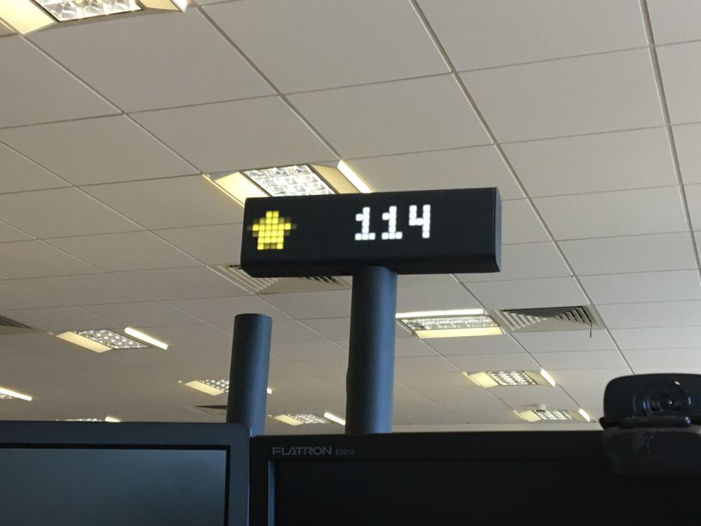 The clock updates almost immediately after. Here it is above my desk showing the number of claps so far for the day: