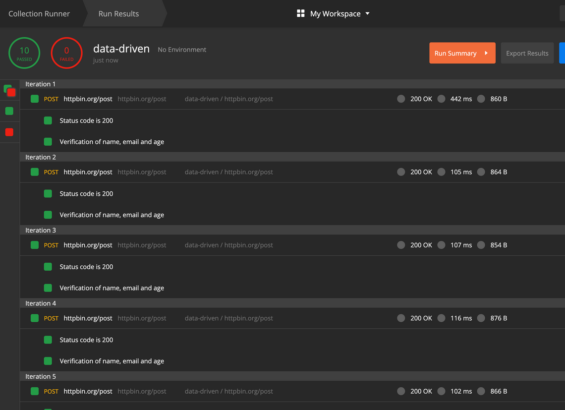 Here is an end2end scenario of executing requests through the collection runner. I supplied a data file in CSV whose values are replaced while the request is getting executed.