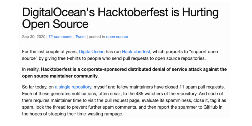Digital Ocean certainly had good intentions when they staged this event. However, they misunderstood and misjudged the dynamics of how the open source community works.