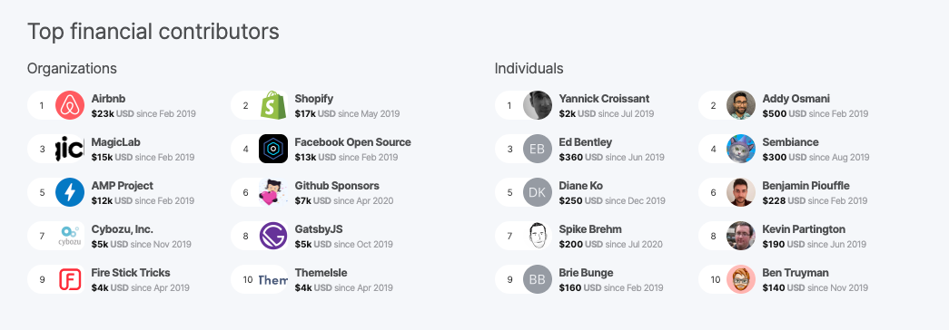 As you can see, Eslint raises enough to theoretically employ 1.5 developers. Most of the top projects raise considerably less than this, and the long-tail of projects that fall outside of this top 30 earn even less still.